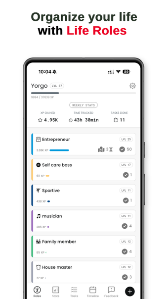 Orakemu - Planner Journal RPG é um aplicativo de produtividade gratuito de Yorgo Hoebeke. É um planejador diário projetado para melhorar sua vida profissional tratando seus objetivos e lista de tarefas como um jogo de interpretação de papéis (RPG). Cada tarefa que você completa recompensa você com pontos de experiência (XP), semelhante a subir de nível.
