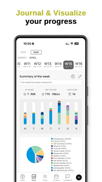 Além de ser apenas um organizador de tarefas, este aplicativo útil vem com diário alimentado por IA, que fornece insights sobre seu progresso, humor e pensamentos, permitindo que você reflita sobre sua jornada e faça espaço para melhorias para alcançar melhor seus objetivos. Além disso, sua interface intuitiva e análises inteligentes facilitam o acompanhamento do progresso ao longo do tempo, ajudando você a se manter motivado e focado.
